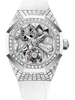 | DIAL | Openworked 18-carat white gold dial set with baguette-cut diamonds, openworked white gold hands with luminescent coating, white gold inner bezel set with baguette-cut diamonds. |