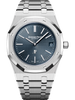 “Bleu nuit nuage 50” dial with “Petite Tapisserie” pattern, white gold applied hour-markers and Royal Oak hands with luminescent coating. |