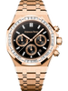 Featuring a jet-black onyx dial dressed with baguette-cut diamonds, this pink gold Royal Oak Selfwinding Chronograph brings a touch of elegance to this iconic sports watch.