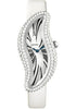 47.25mm x 22.9mm 18K white gold case set with round-cut diamonds, lacquered and silvered dial with sun-like finish effect, manual winding calibre 9770 MC movement, fabric strap with 18K gold ardillon buckle. Water resistant to 30 meters.