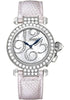 32 mm 18K white gold case set with diamonds, diamond bezel, white mother of pearl dial with large Arabic numerals set with diamonds, quartz Cartier calibre 690 movement, lizard strap with 18K gold double deployant buckle. Water resistant to 30 meters.