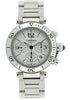 42.5 mm stainless steel case, engraved rotating diving bezel with engraved Arabic numerals, white dial with Arabic numerals, automatic winding Cartier calibre 8630 movement with chronograph function, stainless steel bracelet. Water resistant to 100 meters.