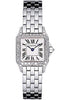 Small size (28.25mm x 21.65mm), 18K white gold case set with diamonds, silver dial, quartz movement, 18K gold bracelet. Water resistant to 30 meters (100 feet).