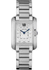 Small size (30.2mm x 22.7mm) stainless steel case, 7.19mm thick, 9-sided crown set with a synthetic spinel, sapphire crystal, silvered flinqué dial with 11 brilliant-cut diamond hour markers, Roman numeral, and blued-steel sword-shaped hands, quartz movement, stainless steel bracelet. Water resistant to 30 meters.