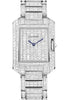 Medium size (39.2mm x 29.8mm) rhodiumized 18K white gold case set with baguette-cut diamonds, nine-sided crown set with a brilliant-cut diamond, sapphire crystal, baguette-cut diamond paved rhodiumized 18K white gold...