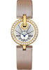 Small Size (27mm) 18K yellow gold case set with round diamonds, silvered guilloché dial with sunburst finish and 3 Roman numerals, quartz Cartier caliber 056 movement, tiole brossée fabric strap with 18K yellow gold deployant buckle. Water resistant to 30 meters.