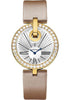 Large size (35mm) 18K yellow gold case set with round diamonds, silvered guilloché dial with sunburst finish and 3 Roman numerals, quartz Cartier caliber 056 movement, tiole brossée fabric strap with 18K yellow gold deployant buckle. Water resistant to 30 meters.