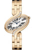 Large size (38.39mm x 43.81mm) 18K pink gold case set with round diamonds, circular-grained crown with set with a diamond, lacquered silvered dial with exterior flinqué decoration and black Roman numerals, quartz Cartier caliber 157 movement, 18K pink gold bracelet. Water resistant to 30 meters.