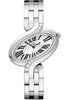 Large size (38.39mm x 43.81mm) rhodiumized 18K white gold case set with round diamonds, circular-grained crown with set with a diamond, lacquered silvered dial with exterior flinqué decoration and black Roman numerals, quartz Cartier caliber 157 movement, rhodiumized 18K white gold bracelet. Water resistant to 30 meters.