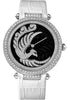 Cartier Evol D'un Phoenix Watch 42.75mm 18K white gold case set with 400 diamonds, 11.40mm thick, sapphire back, pearled crown with a cut diamond, sapphire crystal, dark purple mother of pearl dial with Phoenix oscillating mass complication in rhodiumized 18K white gold set with 162 brilliant-cut diamonds. Eye set with a tsavorite., caliber 9603 MC automatic movement, approximately 48 hours of power reserve, white alligator strap, double folding buckle with 18K pink gold set with 43 brilliant cut diamonds. Water resistant to 30 meters.