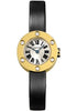18K yellow gold case set with six diamonds, Love engraved back, silver sunray dial, quartz Cartier calibre 157 movement, fabric strap with 18K gold tang type buckle. Water resistant to 30 meters.