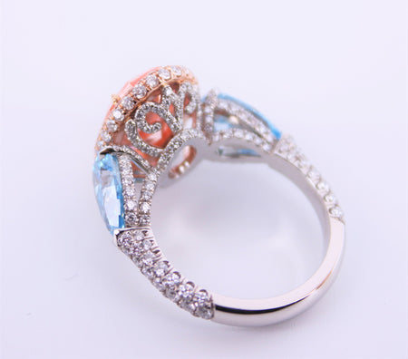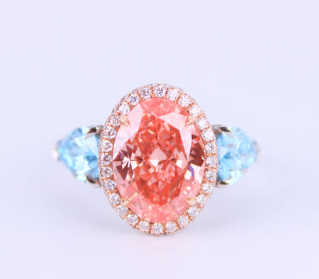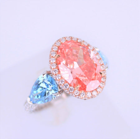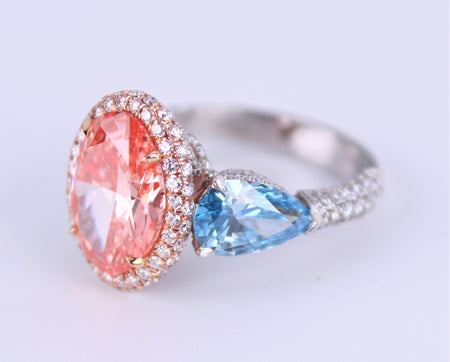 Ladies Pink Oval 3.52 CT HPHT Diamond Ring. 18k White gold set with brilliant round cut diamonds - 2.20 CT BLUE PEAR SHAPED DIAMONDS