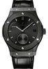 Hublot Classic Fusion Power Reserve All Black Limited Edition of 500 Watch 45 mm polished and satin-finished black ceramic case, polished and satin-finished black ceramic bezel with 6 H-shaped titanium screws, sapphire crystal with anti-reflective treatment, black dial with sunray satin-finish and polished black plated appliques and hands, HUB1601 manual movement with reserve movement, approximately 192 hours / 8 days of power reserve, black rubber and alligator strap, black PVD stainless steel deployant buckle. Water resistant to 50 meters.