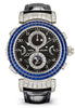 This watch is accompanied by white gold cuff links set with baguette-cut blue sapphires.