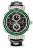 This watch is accompanied by white gold cufflinks set with a row of baguette-cut emeralds.