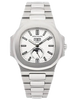 The steel Nautilus, endowed with an Annual Calendar and moon-phase display, now features a new white dial. Horizontal embossing and subtle grading from blue to black at the dial’s periphery...