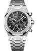 This 41 mm Selfwinding Chronograph encompasses the latest Royal Oak design evolution. Its stainless steel case and bracelet are embellished with a black “Grande Tapisserie” dial.