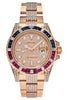 Rolex GMT Master II Rose Gold Sapphire & Rubies Diamond Pave 126755SARU