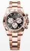 This Oyster PerpetualCosmograph Daytonain18 kt Everose gold, witha bright black and Sundustdial andan Oysterbracelet, featuresan 18 kt Everose goldbezel with an engraved tachymetric scale.