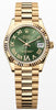 This Oyster Perpetual Datejust 31 in 18 kt yellow gold features an olive-green, diamond-set dial and a President bracelet.