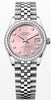 This Oyster Perpetual Datejust 31 in Oystersteel and white gold features a pink, diamond-set dial and a Jubilee bracelet.
