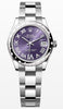 This Oyster Perpetual Datejust 31 in Oystersteel and white gold features an aubergine, diamond-set dial and an Oyster bracelet.