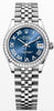 This Oyster Perpetual Datejust 31 in Oystersteel and white gold features a bright blue dial and a Jubilee bracelet.