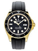 This Rolex Yacht-Master is crafted in a 42mm yellow gold case with a bidirectional rotating bezel. The black dial features luminescent hands and hour markers and Chromalight display. The watch comes on a black durable Oysterflex bracelet.