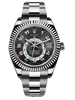 42mm 18K white gold case, screw-down back, screw-down crown, fluted bezel with bidirectional rotatable Rolex Ring Command, scratch-resistant sapphire crystal with cyclops lens over the date and double anti-reflective coating, black dial, Rolex calibre 9001 automatic movement , second time-zone displayed via off-center rotating disc, Saros annual calendar with date at 3 o'clock and month indicated in discrete apertures at each of the 12 hour marks, 18K white gold Oyster bracelet with flat three-piece links, folding Oysterclasp buckle with Easylink 5mm comfort extension link. Waterproof to 100 meters.