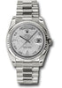 36mm 18K white gold case, fluted bezel, meteorite dial, 2 diamond hour markers and Arabic numerals, and President bracelet.