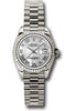26mm 18K white gold case, fluted bezel, mother of pearl dial, Roman numerals, and President bracelet.