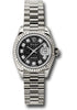 26mm 18K white gold case, fluted bezel, black Jubilee dial, diamond hour markers, and President bracelet.