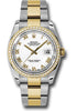 36mm stainless steel case, 18K yellow gold bezel set with 52 brilliant-cut diamonds, white dial, Roman numerals, and stainless steel and 18K yellow Oyster bracelet.