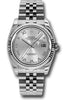 36mm stainless steel case, 18K white gold fluted bezel, silver rhodium dial, Roman numerals, and Jubilee bracelet.