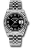 36mm stainless steel case, 18K white gold fluted bezel, black dial, Roman numerals, and Jubilee bracelet.