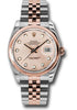 36mm stainless steel case, 18K pink gold domed bezel, pink champagne dial, diamond hour markers, and stainless steel and 18K pink gold Jubilee bracelet.