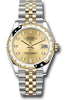 31mm yellow Rolesor case comprised of Oystersteel and 18K yellow gold, screw-down back, screw-down crown with twinlock double waterproofness system, 18K yellow gold domed bezel set with diamonds, scratch-resistant sapphire crystal with cyclops lens over the date, champagne dial, diamond hour markers, Rolex calibre 2236 perpetual self-winding movement with date at 3 o'clock, approximately 55 hours of power reserve, yellow Rolesor Jubilee bracelet with semi-circular three-piece links, concealed folding Crownclasp buckle. Waterproof to 100 meters. Baselworld 2019 release.