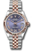 31mm Everose Rolesor case comprised of Oystersteel and 18K Everose gold, screw-down back, screw-down crown with twinlock double waterproofness system, 18K Everose gold fluted bezel, scratch-resistant sapphire crystal with cyclops lens over the date, aubergine dial, Roman numerals with diamond set 6, Rolex calibre 2236 perpetual self-winding movement with date at 3 o'clock, approximately 55 hours of power reserve, Everose Rolesor Jubilee bracelet with semi-circular three-piece links, concealed folding Crownclasp buckle. Waterproof to 100 meters. Baselworld 2019 release.
