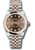 31mm Everose Rolesor case comprised of Oystersteel and 18K Everose gold, screw-down back, screw-down crown with twinlock double waterproofness system, 18K Everose gold domed bezel, scratch-resistant sapphire crystal with cyclops lens over the date, chocolate dial, diamond hour markers, Rolex calibre 2236 perpetual self-winding movement with date at 3 o'clock, approximately 55 hours of power reserve, Everose Rolesor Jubilee bracelet with semi-circular three-piece links, concealed folding Crownclasp buckle. Waterproof to 100 meters. Baselworld 2019 release.