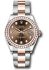 31mm Everose Rolesor case comprised of Oystersteel and 18K Everose gold, screw-down back, screw-down crown with twinlock double waterproofness system, 18K Everose gold bezel set with 46 diamonds, scratch-resistant sapphire crystal with cyclops lens over the date, chocolate dial, diamond hour markers, Rolex calibre 2236 perpetual self-winding movement with date at 3 o'clock, approximately 55 hours of power reserve, Eversose Rolesor Oyster bracelet made from a combination of steel and 18K everose gold with flat three-piece links, folding Oysterclasp buckle with Easylink 5mm comfort extension link. Waterproof to 100 meters. Baselworld 2019 release.