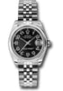 31mm stainless steel case, domed bezel, black concentric circle dial, Arabic numerals, and Jubilee bracelet.
