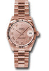 31mm 18K pink gold case, fluted bezel, pink champagne dial, Roman numerals, and President bracelet.