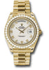 Rolex Oyster Perpetual Day-Date II President 218348 icap The Rolex President. 41mm 18K yellow gold case, bezel set with 42 diamonds, ivory concentric circle dial, Arabic numerals, and President bracelet.