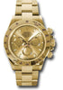 Rolex Oyster Perpetual Cosmograph Daytona 116528 chs 40mm 18K yellow gold case, tachymeter engraved bezel, screw-down push buttons, champagne dial, and Oysterlock bracelet.
