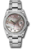 DESCRIPTION: Rolex Oyster Perpetual Datejust 36 Watch 116244 dkmdo 36mm stainless steel case, 18K white gold bezel set with 52 brilliant-cut diamonds, dark mother of pearl dial, diamond hour markers, and stainless steel Oyster bracelet