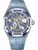 | BAND MATERIAL | Hand-stitched “large square-scale” light blue alligator strap with 18-carat white gold AP folding clasp set with brilliant-cut blue sapphires. Additional light blue rubber strap with “constellation” decoration |