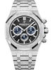 The frosted 18-carat white gold case of this special edition of 111 pieces illuminates the black “Grande Tapisserie” dial subtly enhanced by touches of grey. Hammered 18-carat white gold case, glareproofed sapphire crystal, screw-locked crown. Black dial with “Grande Tapisserie” pattern, grey blue counters, white gold applied hour-markers and Royal Oak hands with luminescent coating.